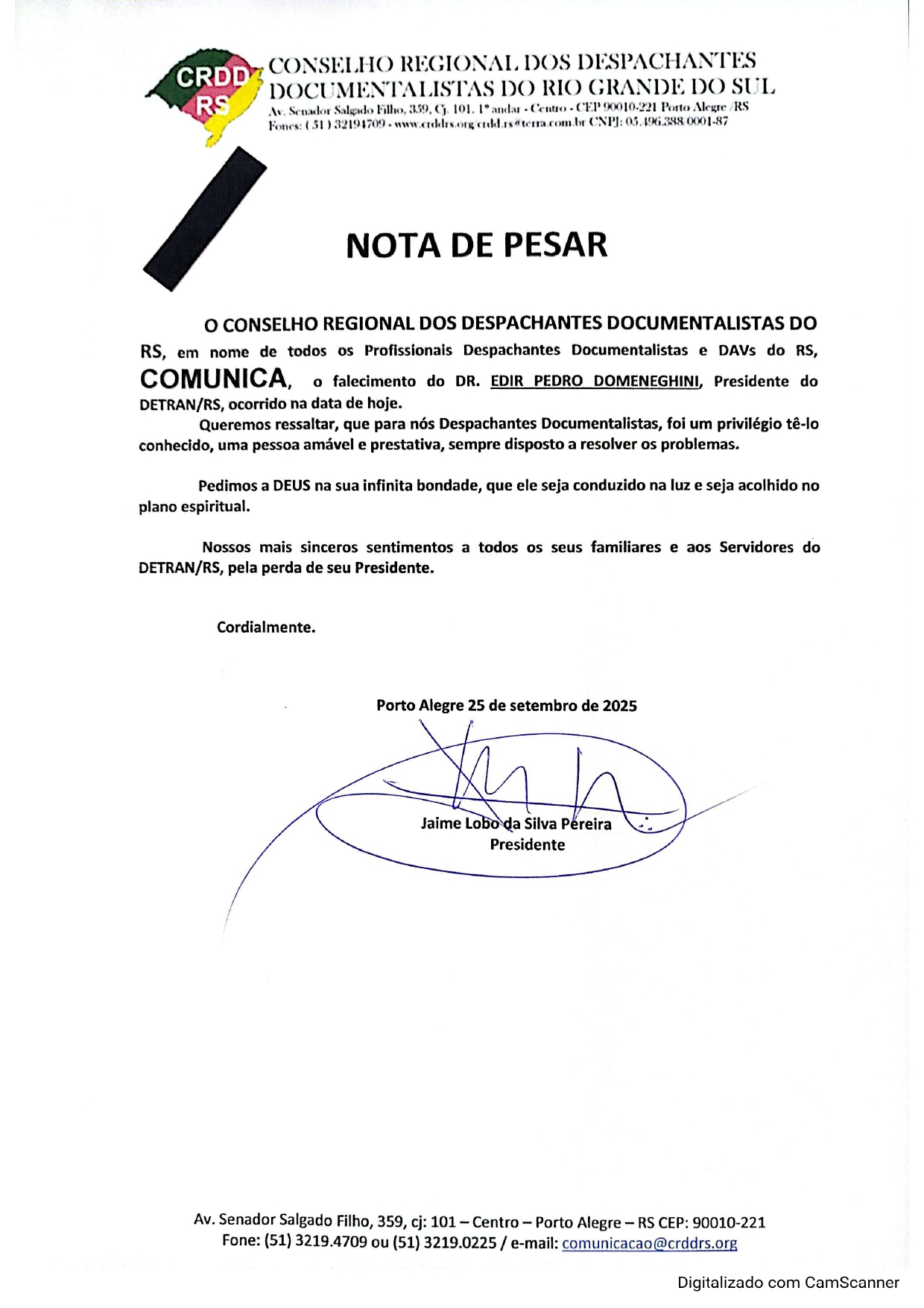 Devido a instabilidade da rede de telefonia, estamos atendendo ligações de voz também pelo telefone celular 51 98151-8374, não serão atendidas mensagens de texto, caso precise mandar um documento enviar pelos emails oficiais do CRDD/RS.Edital de Convocação da Assembléia Geral Extraordinária do Conselho Regional dos Despachantes Documentalista do Rio Grande do Sul